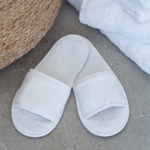 Terry Room Slippers White Open Toe Unisex