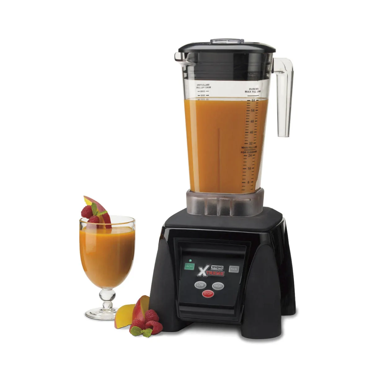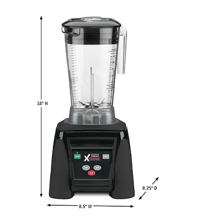 Get smooth, consistent results every time with the Waring® MX1050XTX. This heavy-duty, powerful, 3.5 Peak HP blender teams up with The Raptor® blade and jar assembly for maximum power and efficiency. This workhorse features an easy-to-clean, electronic-membrane keypad with HI, LOW, OFF and PULSE functions. Perfect for a busy bar, health facility, school or coffee shop.
